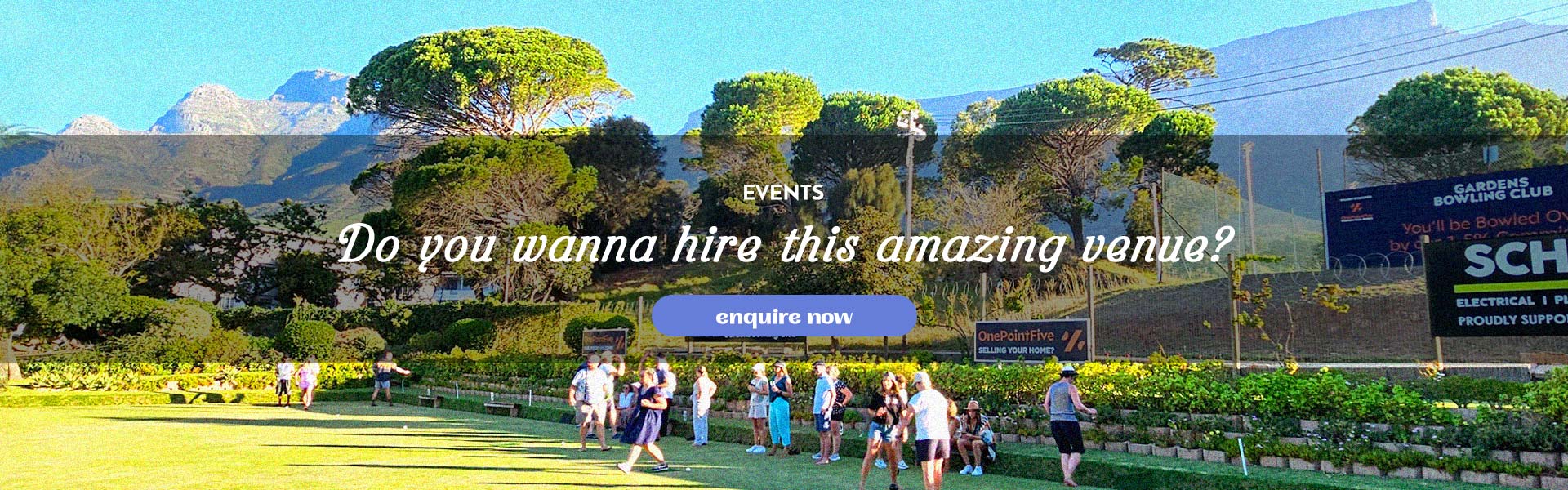 Situated in Cape Town City Centre, it has the magnificent Table Mountain as a backdrop. Formed in 1895, Gardens Bowling Club is the 3rd oldest bowling club in South Africa and the oldest in the Western Province. Our green is open for 12 months of the year. We would like to see you there. If you are planning a holiday to Cape Town and are a bowler, then please get in touch and join us. If you would like to try the sport with the prospect of playing regularly, then please get in touch and join us. With the bar possibly being the cheapest in the city, it is worth a visit. It comfortably holds 50 and can be hired for functions.